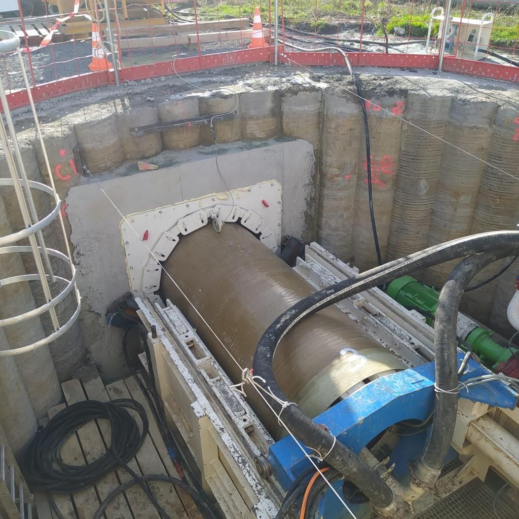 Le micro-tunnelier permet la pose de conduites sans tranchée, en limitant les nuisances et les excavations. Les tuyaux PRV, conformes à la norme ISO 25780, offrent une grande résistance aux efforts de poussée et une étanchéité parfaite pour les réseaux d’assainissement.